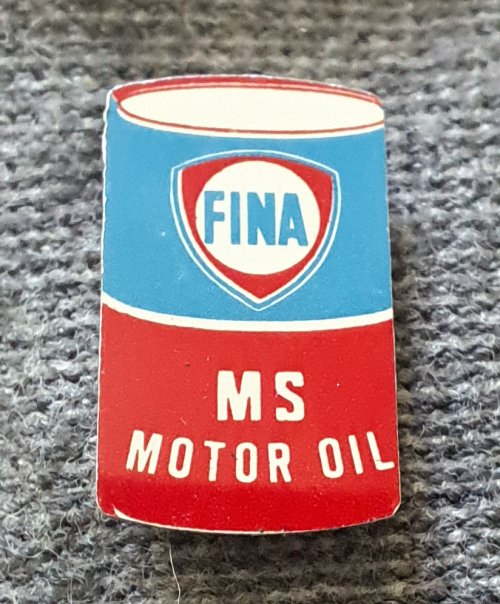 Fina MS Motor Oil001-010 cent, 20230315, Achtergrond: Rood, Achtergrond: Wit, Blik / Metaal, Brandstof / Energie, Gebruikt, Marktplaats, Nederland, Opdruk: Blauw, Opdruk: WitWebsite LastDodo