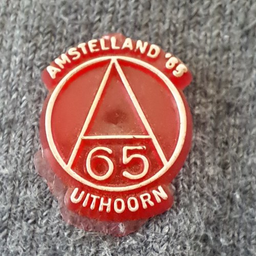 Amstelland 65 A65 UithoornAchtergrond: Rood, Gebruikt, Kunststof, Nederland, Niet gecategoriseerd, Opdruk: Zilver