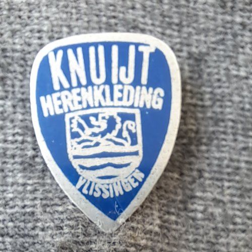 Knuijt Herenkleding VlissingenAchtergrond: Blauw, Blik / Metaal, Fashion, Gebruikt, Leeuw / tijger / panter, Nederland, Opdruk: Zilver, Wapen (Gemeente etc,)Knuyt