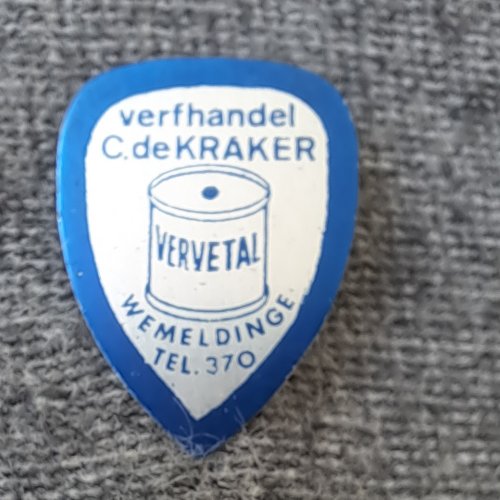 Verfhandel C. de Kraker Wemeldinge tel. 370 VervetalAchtergrond: Blauw, Blik / Metaal, Gebruikt, Klussen / Interieur / Exterieur, Opdruk: Zilver