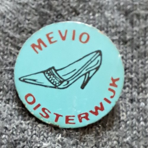 Mevio Oisterwijk [blauw]Achtergrond: Blauw, Blik / Metaal, Gebruikt, Nederland, Opdruk: Rood, Schoenen