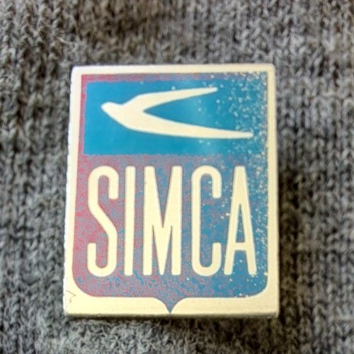 SimcaAchtergrond: Blauw, Blik / Metaal, Gebruikt, Nederland, Opdruk: Zilver, VogelVerloop van kleuren / automerk