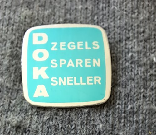 DOKA zegels sparen sneller [lichtblauw]Achtergrond: Blauw, Blik / Metaal, Gebruikt, Nederland, Opdruk: Zilver