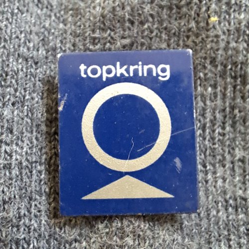 K.W.J. groep Driesprong BredaAchtergrond: Blauw, Blik / Metaal, Bouw, Figuur / persoon, Gebruikt, Nederland, Opdruk: ZilverKWJ / Katholieke Werkende Jongeren