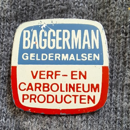 Baggerman Geldermalsen verf- en carbolieumproductenAchtergrond: Blauw, Achtergrond: Wit, Blik / Metaal, Gebruikt, Klussen / Interieur / Exterieur, Nederland, Opdruk: Rood, Opdruk: Wit