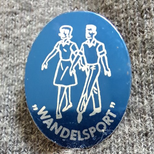 “Wandelsport”Achtergrond: Blauw, Blik / Metaal, Gebruikt, Nederland, Opdruk: Zilver, Sport en spel, Sporter