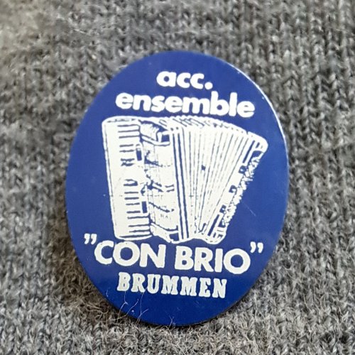 Acc. ensemble “Con Brio” BrummenAchtergrond: Blauw, Blik / Metaal, Gebruikt, Muziek, Nederland, Opdruk: ZilverAccordeon
