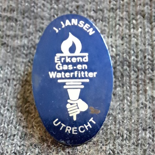 J. Jansen Erkend Gas- en Waterfitter UtrechtAchtergrond: Blauw, Blik / Metaal, Brandstof / Energie, Gebruikt, Nederland, Opdruk: Zilver