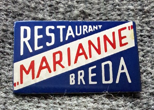 Restaurant “Marianne” BredaAchtergrond: Blauw, Achtergrond: Zilver, Gebruikt, Horeca / uitgaan, Nederland, Opdruk: Rood, Opdruk: Zilver