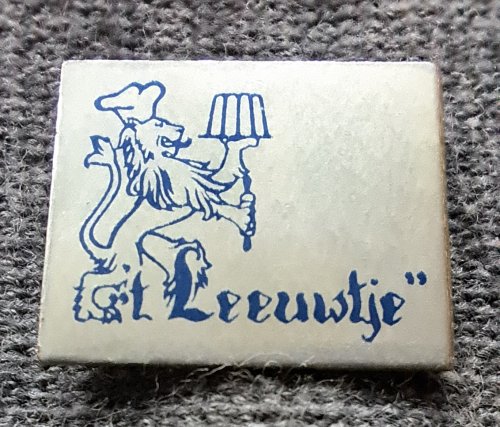 ‘t LeeuwtjeAchtergrond: Zilver, Blik / Metaal, Gebruikt, Horeca / uitgaan, Leeuw / tijger / panter, Nederland, Opdruk: BlauwRestaurant / koksmuts