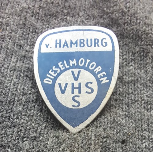 v. Hamburg dieselmotoren VHSAchtergrond: Blauw, Achtergrond: Zilver, Blik / Metaal, Gebruikt, Nederland, Opdruk: Blauw, Opdruk: ZilverV.H.S. / Letters