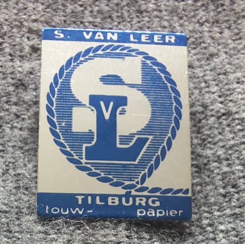 S. van Leer Tilburg touw papierAchtergrond: Blauw, Achtergrond: Zilver, Blik / Metaal, Gebruikt, Nederland, Opdruk: Blauw, Opdruk: ZilverLetters S.V.L. / SVL