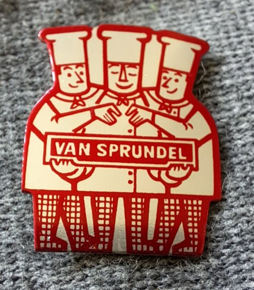 Van Sprundel [rood]20230401, Achtergrond: Rood, Bakker / Kok, Banket en koek(en), Blik / Metaal, Gebruikt, Nederland, Opdruk: Wit, PanningenWebsite LastDodo