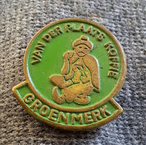 Van der Plaats koffie / GroenmerkAchtergrond: Groen, Blik / Metaal, Gebruikt, Koffie en thee, Nederland, Opdruk: Goud, Personage