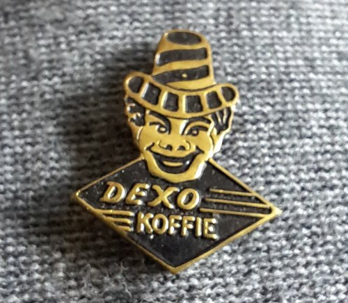 Dexo koffie [zwart]Achtergrond: Zwart, Blik / Metaal, Gebruikt, Koffie en thee, Nederland, Opdruk: Goud, Portret